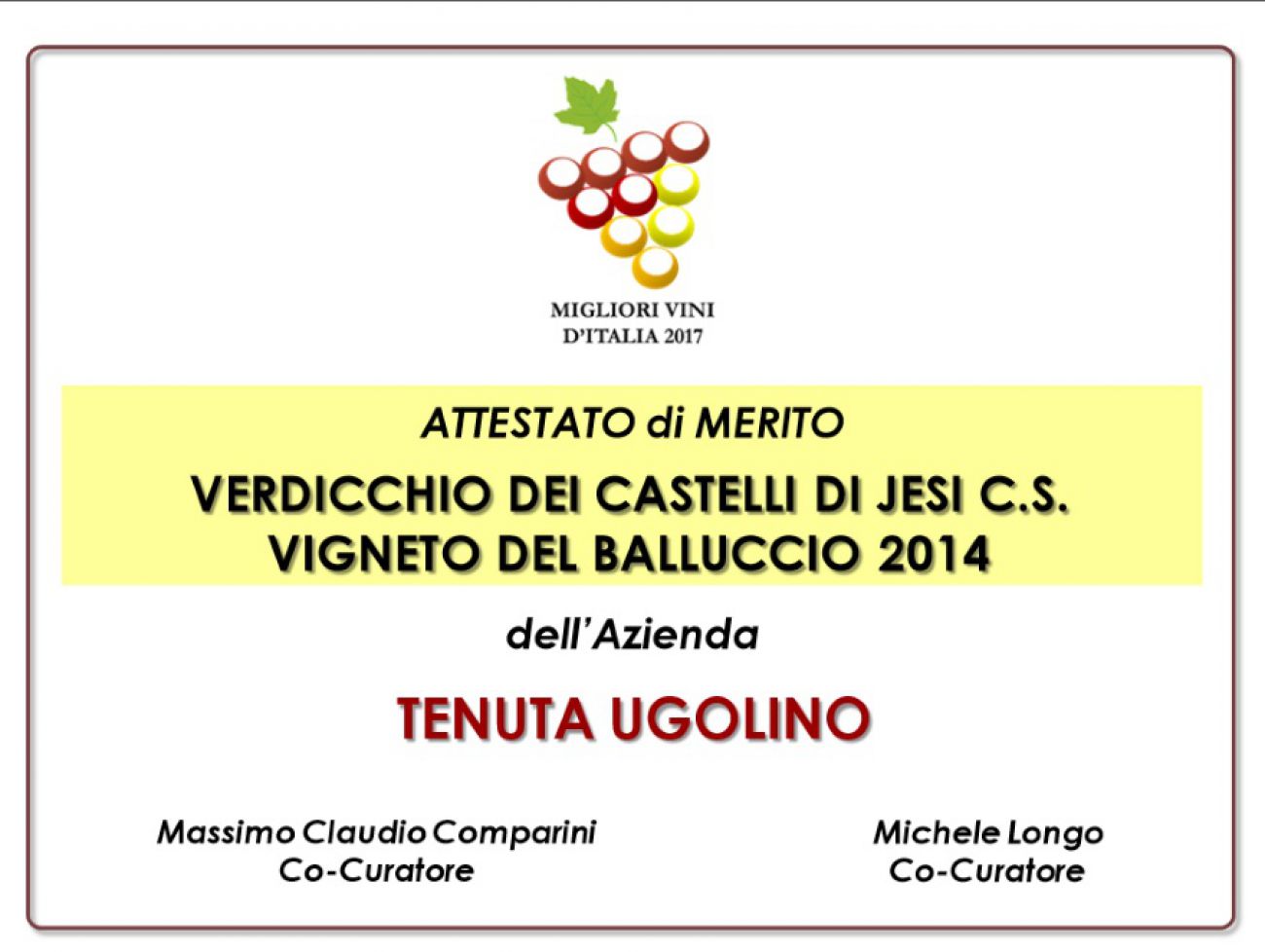 Vigneto del Balluccio 2014: Certificate of Merit of the Guide "Best Italian Wines 2017"